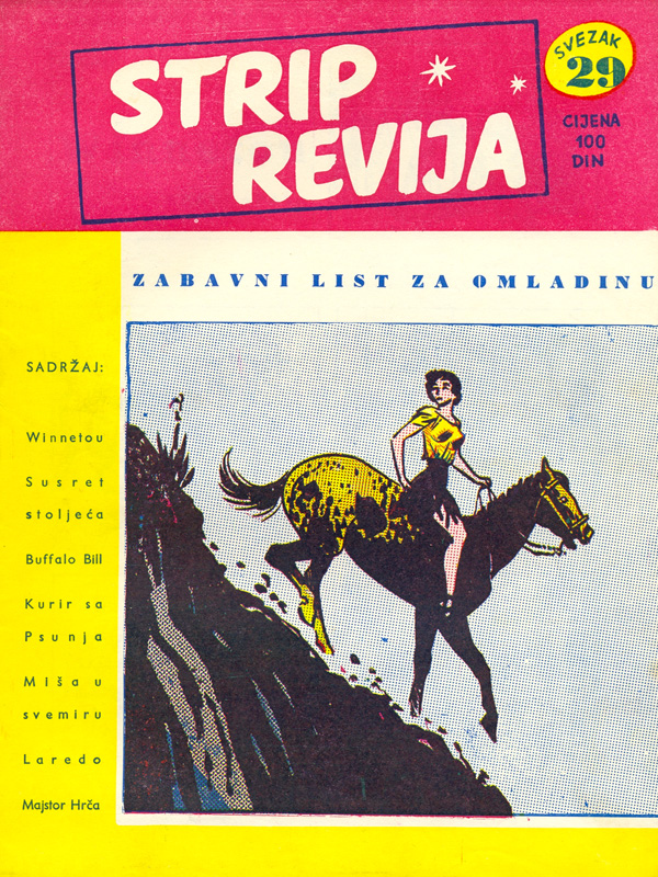 STRIP REVIJA (1962.)Izdavač: Epoha | Grad: Zagreb Ukupno brojeva: 50 [popis edicije] Izlazilo od 1962/08 do 1963/08 | Format: 190x162 mm Naslovnice | Korice (Meke/Kartonske/Tvrde): M, klamano Napomena: Svi svesci objavljeni su u 2 knjige originalnog koričenja, ... [Više!] Ova stranica je samo popis objavljenih izdanja edicije. Za provjeru dostupnosti kliknite na link ispod. Provjerite dostupnost: u ponudi Strip-knjižare Asteroid B612 |