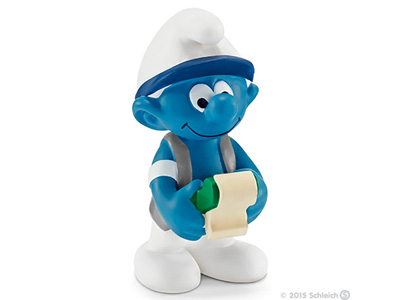 Posljednja izmjena: 22.1.2026. Slika je simbolička i ne prikazuje stvarnu figuricu. Figurica u prodaji je neka od varijanti (ukoliko ih ima više) temeljne figurice s tim kataloškim brojem, prema Der Schlumpf Katalog IV, Oswald Verlag, 2003, ISBN 3-9805031-9-4.